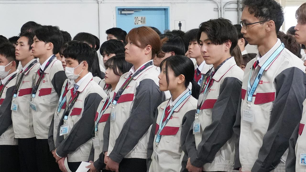 On April 1, 2025, Daihatsu Motor held its initiation ceremony. On this special day that welcomed 227 new “Partners,” the “Welcome Video” played at the venue caused a big stir. Employees from various locations in Japan and overseas appeared in the video and cheerfully delivered their welcome messages, creating lasting impressions in the memories of new employees.