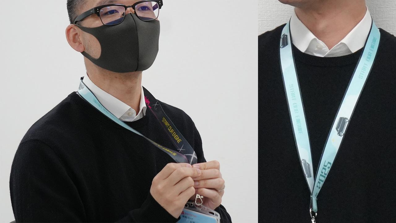 Mr. Motonishi: That’s right! We made matching lanyards with the hope that they will develop “ties with their peers” and a “fondness for Daihatsu.” The lanyards were emblazoned with the words “Start Our Engine,” which the new employees came up with during the prospective employee training. The Styling Division created several design ideas for the lanyards, and everyone decided on this one. We hope that they will always cherish these words, along with “Partners,” as a slogan among peers.