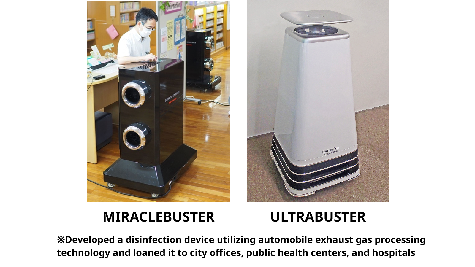 Mr. Ehara That’s right. For example, the MIRACLEBUSTER disinfection device we developed during the COVID-19 pandemic was an application of technology that purifies automobile exhaust gases using plasma. At first, we were told that we didn’t need to develop it anymore, but we continued working quietly and steadily, and before we knew it, we were able to put the technology to good use.