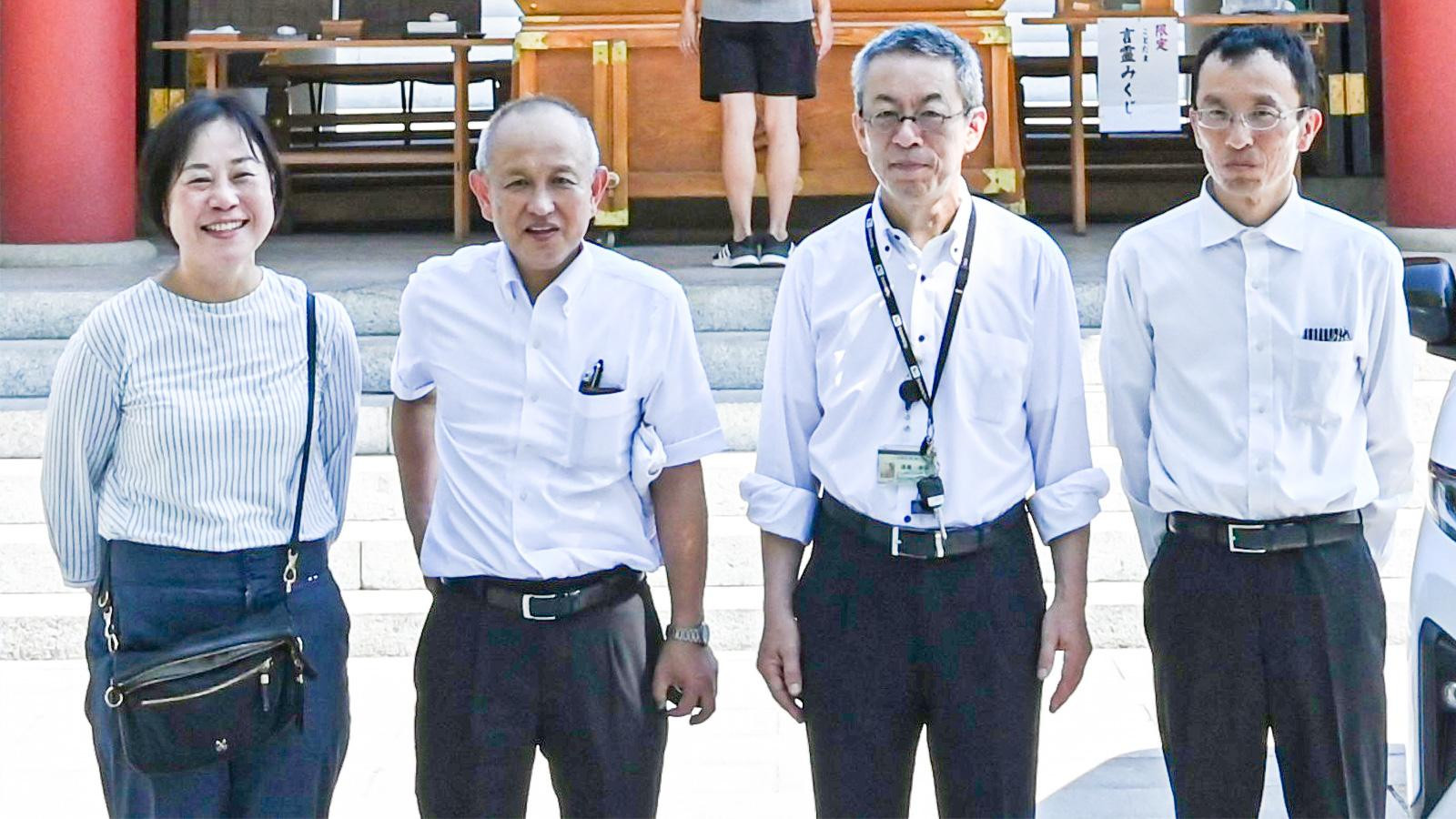新車祈願式を担当するのは総務部の藪元さん、加藤さん、佐々木さん、遠藤さん、太田さん。