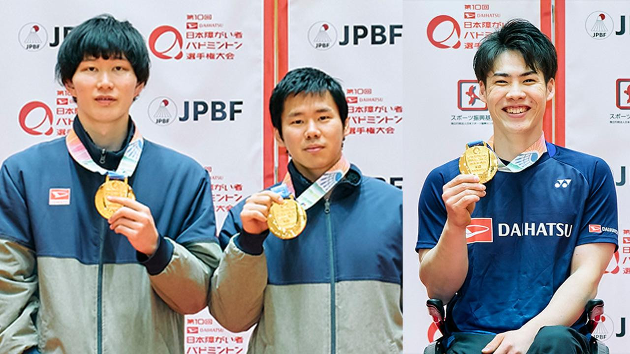 ダイハツ所属のパラバドミントン選手、藤原大輔選手、今井大湧選手、梶原大暉選手の3名が